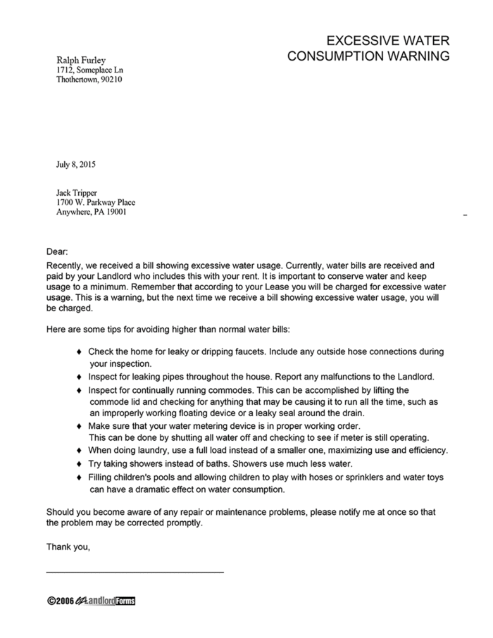 Excessive Water Consumption Warning Ezlandlordforms
