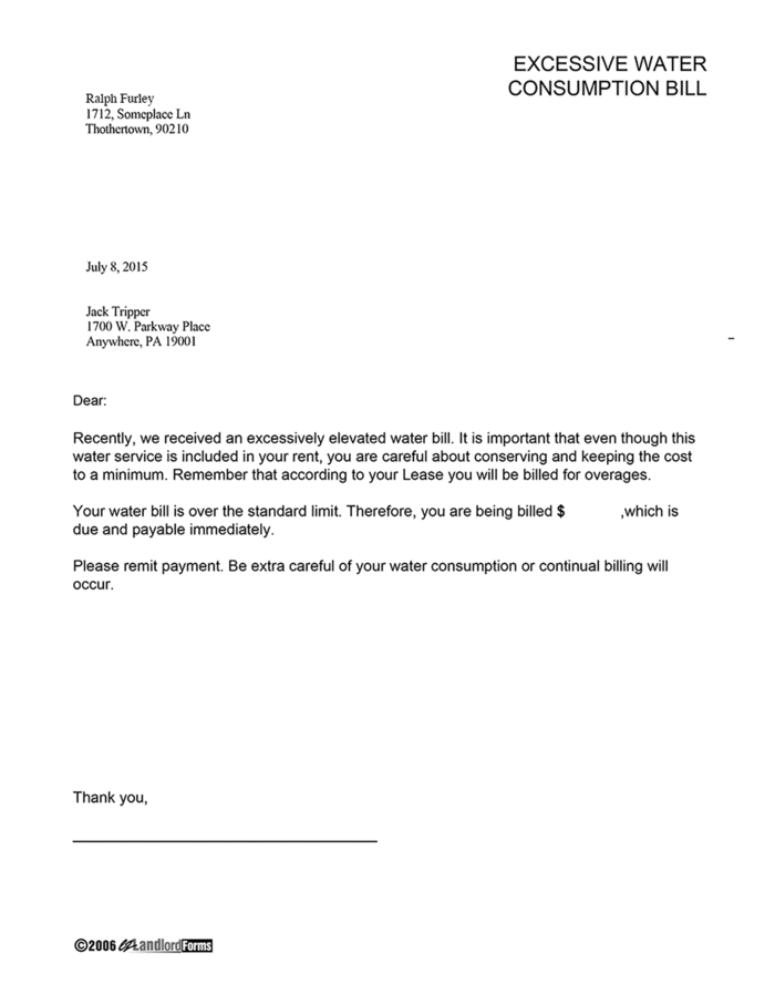 Excessive Water Consumption Bill Ezlandlordforms